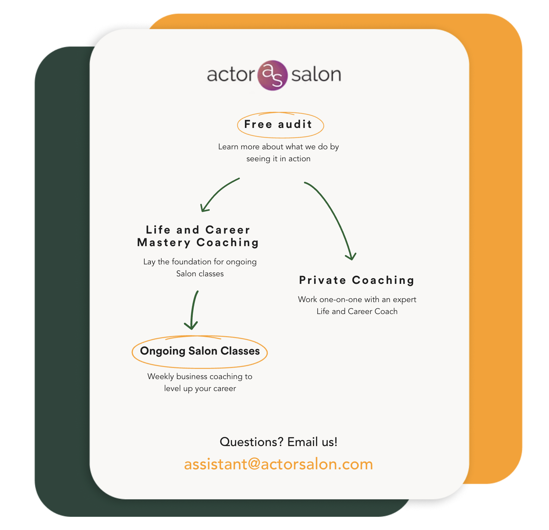Actor Salon has provided life and career coaching since 2007 and continues to be a growing, thriving community. A space created for new and seasoned actors alike; where accountability, fierce coaching and empowering teaching puts the actor in the driver’s seat – with creativity at your side and fear in the way, way back!